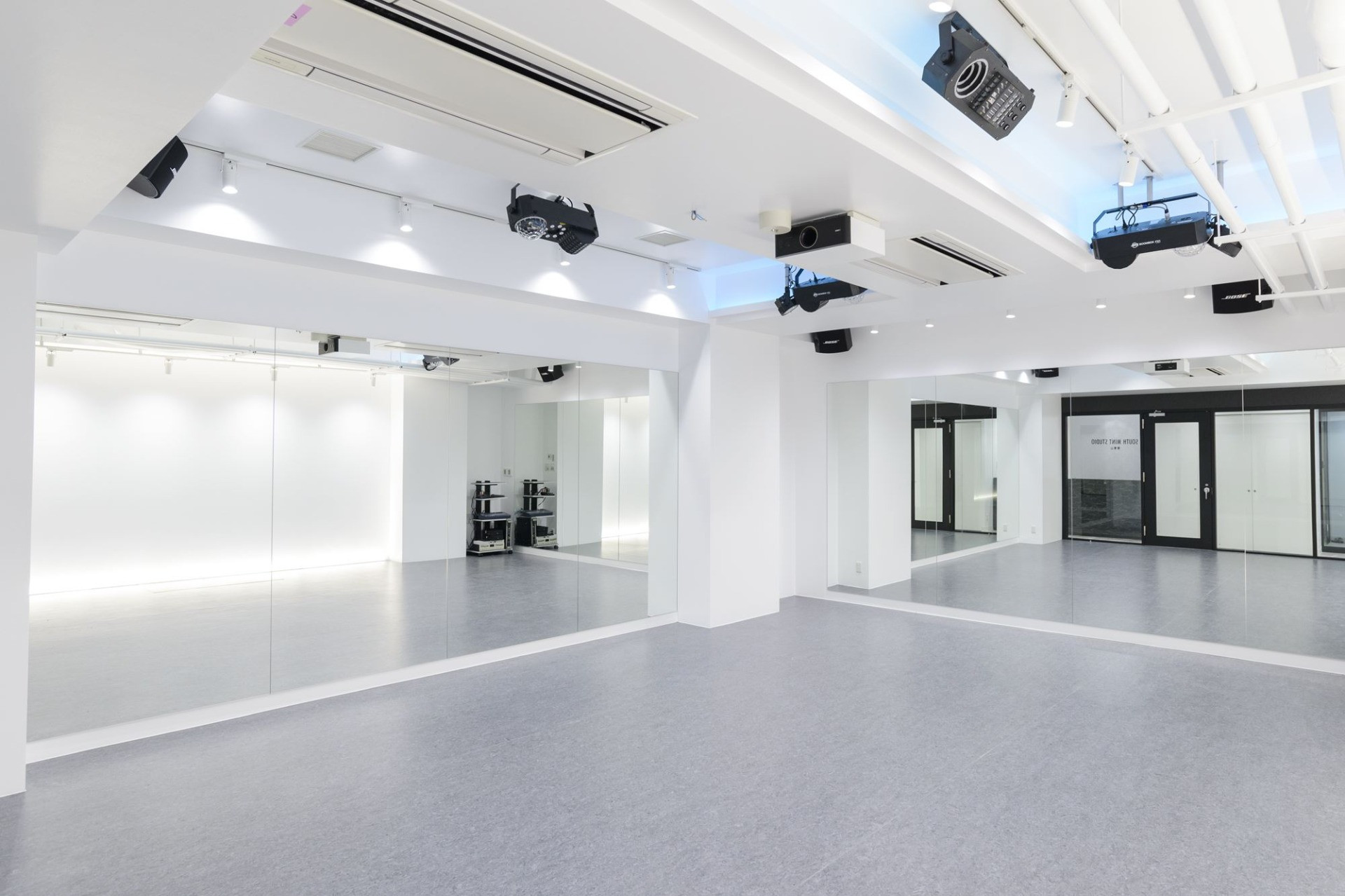 日本韓国のアイドルグループの振付レッスン、YouTube撮影、TV番組撮影、オーディション、レッスンなど様白と黒を基調とした、スタイリッシュで美しい、新しいレンタルスタジオ、レンタルスペース!様々な用途でご利用されています。2面の全面鏡張り、床は6cmゴムの上にリノリウムですので膝への負担も軽くダンスやバレエのお稽古にも最適です。完全防音ですので大音量や楽器の演奏もOK!